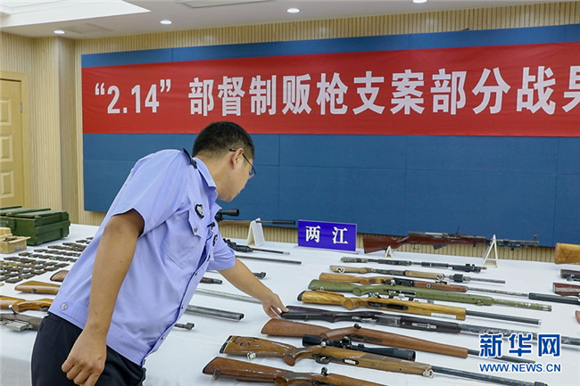 在公安部統(tǒng)一部署下,重慶兩江新區(qū)警方成功破獲“2.14”部督跨省網絡制販槍團伙案,專案組輾轉陜西、廣西、云南、黑龍江、廣東、福建等20余省市,抓獲犯罪嫌疑人35名,打掉網絡販槍源頭2個、制造槍彈窩點3個,繳獲各類槍支39支,子彈1500余發(fā)、鉛彈2300余發(fā)。
