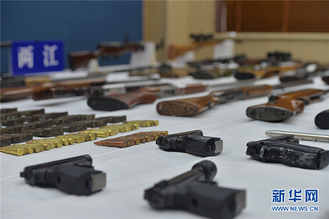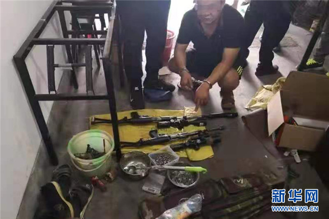 圖為繳獲的槍支子彈。新華網發(fā)(重慶兩江新區(qū)警方供圖)