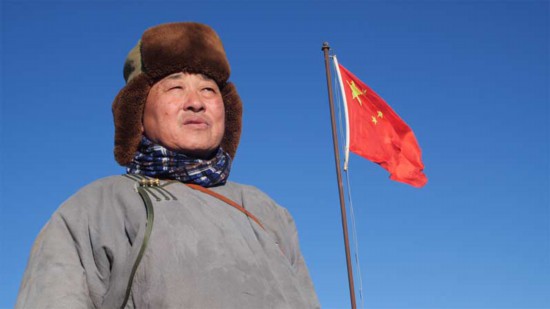 在阿迪亞家西南方向一片朝東的斜坡上,紅色磚塊擺出的“中國”兩個字格外引人注目。那是2008年阿迪亞親手?jǐn)[出來的。娜仁其其格清楚地記得,當(dāng)年夏季的一天,阿迪亞早早出門,一個多小時后匆匆跑回家中把正熬奶茶的她拉出屋子,“你看那是什么?”娜仁其其格順著望去,那里多了“中國”兩個大字。