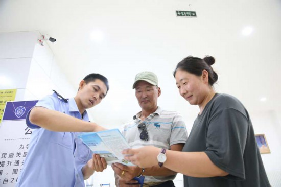 在滿都拉口岸,包頭出入境邊防檢查站執(zhí)勤業(yè)務(wù)科副科長宋強每天24小時帶著對講機。執(zhí)勤時,他的代號是“04”。