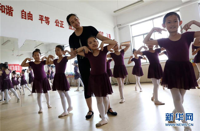 8月6日,在石家莊市靈壽縣文化館,石家莊市群眾藝術館舞蹈老師在指導孩子們舞蹈動作。新華社記者駱學峰攝