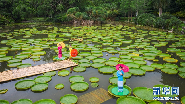 當(dāng)下王蓮已進(jìn)入最佳觀賞期,西雙版納熱帶植物園舉辦了以“品眾蓮之韻,駕一葉之舟”為主題的“賞蓮月”系列活動,其中最受小朋友歡迎的“我的王蓮我的船”活動也面向公眾開放,讓小朋友與王蓮近距離接觸。新華網(wǎng)發(fā)(趙熠 攝)