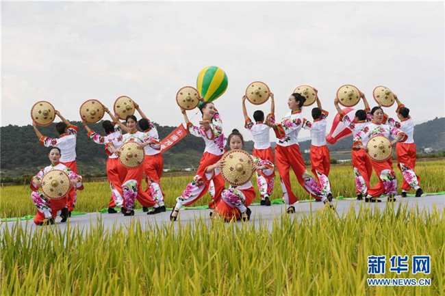 9月15日,人們在田野里表演舞蹈《在希望的田野上》。