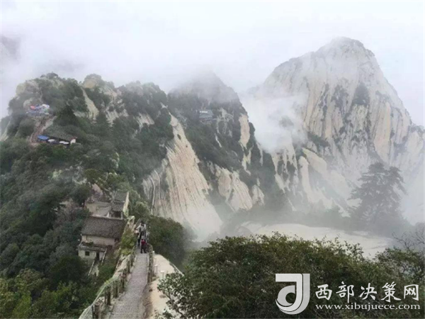 眾所周知,華山在五岳之中以“險(xiǎn)峻”著稱。素有“奇險(xiǎn)天下第一山”之譽(yù),華山的主體是由一塊完整碩大的花崗巖體構(gòu)成的,挺拔地屹立在渭河平原。東、南、西三峰拔地而起,如利刃削就。由于華山太險(xiǎn),所以唐代以前很少有人登臨,歷代君王祭祀西岳,也只是在山下西岳廟中舉行大典。據(jù)記載,直到魏晉南北朝時(shí)期,還沒有通向華山峰頂?shù)牡缆?。唐代才逐漸在北坡沿溪谷而上開鑿了一條險(xiǎn)道,也從此有了“自古華山一條路”的說法。