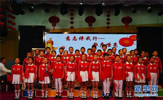 9月26日,北京市建華實(shí)驗(yàn)學(xué)校的小學(xué)生在活動(dòng)中合唱紅色歌曲。