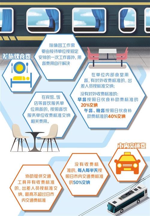 今年7月份,財政部等三部門發(fā)文規(guī)范中央級差旅費管理,要求中央單位出差人員自行解決相關(guān)費用、主動交納,也要求接待單位按規(guī)定收取費用,不得拒收。各地要結(jié)合本地區(qū)實際,制定本地區(qū)出差人員差旅伙食費和市內(nèi)交通費收交管理規(guī)定。近期各地發(fā)布的新規(guī),正是為了落實這一要求。
