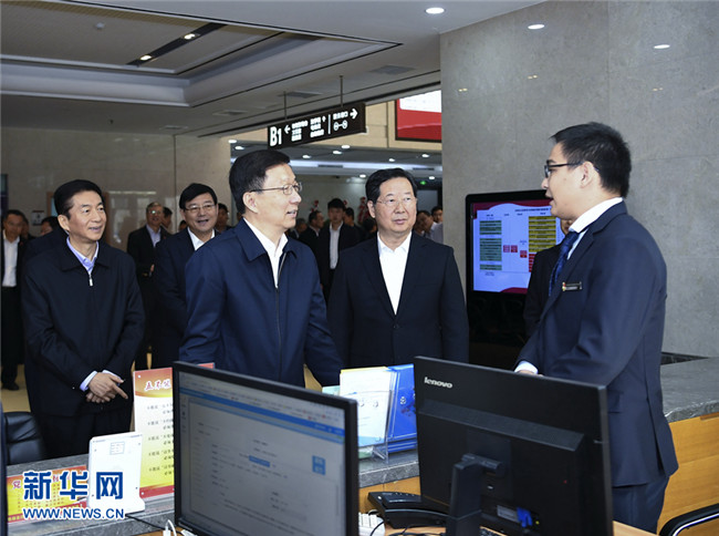 10月21日至22日,中共中央政治局常委、國務(wù)院副總理韓正在山西省調(diào)研。這是10月21日,韓正來到山西省政務(wù)服務(wù)中心,考察政府職能轉(zhuǎn)變和“放管服”改革推進情況。新華社記者燕雁攝