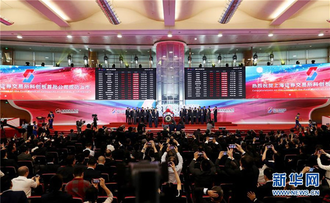 這是上海證券交易所舉行的科創(chuàng)板首批公司上市儀式現(xiàn)場(7月22日攝)。新華社記者 方喆攝