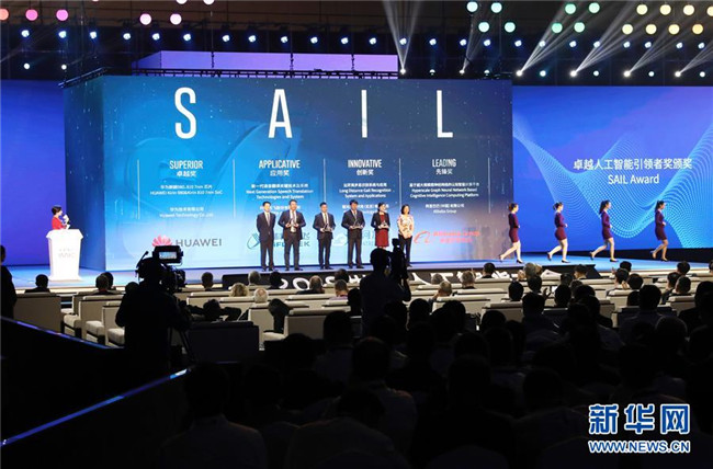 在上海舉行的2019世界人工智能大會(huì)開幕式上,獲得卓越人工智能引領(lǐng)者獎(jiǎng)的企業(yè)代表合影(8月29日攝)。新華社記者 方喆攝