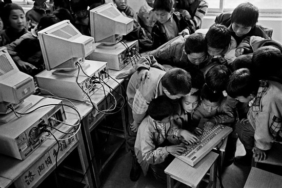 2001年10月,河南省宜陽縣,學(xué)校收到了愛心人士送來的電腦,孩子們第一次觸摸鍵盤。