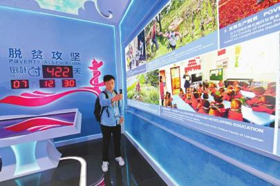脫貧攻堅(jiān)是幸福中國(guó)的生動(dòng)詮釋。一塊脫貧攻堅(jiān)倒計(jì)時(shí)422天的標(biāo)識(shí)牌引發(fā)圍觀,展示的脫貧攻堅(jiān)8項(xiàng)主要成果中,四川占有兩席。作為教育脫貧的成果,一張照片展現(xiàn)了涼山州昭覺(jué)縣幼教點(diǎn)輔導(dǎo)員帶領(lǐng)幼兒學(xué)習(xí)普通話的場(chǎng)景;嚴(yán)把貧困退出關(guān),另一張照片則展示了第三方評(píng)估團(tuán)隊(duì)在甘孜州康定市開(kāi)展貧困縣退出抽查的場(chǎng)景。