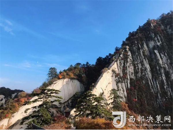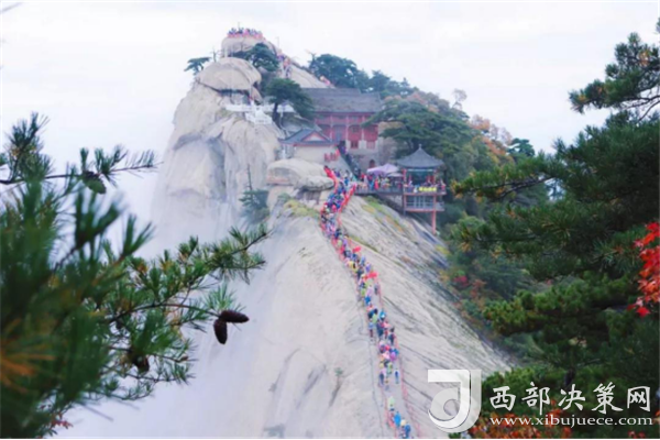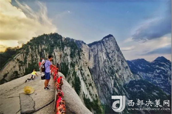 又因峰巔有巨石形狀好似蓮花瓣,古代文人多稱其為蓮花峰、芙蓉峰。西峰為一塊完整巨石,渾然天成。西北絕崖千丈,似刀削鋸截,其陡峭巍峨、陽剛挺拔之勢是華山山形之代表,因此古人常把華山叫蓮花山。西峰南崖有山脊與南峰相連,脊長300余米,石色蒼黛,形態(tài)好像一條屈縮的巨龍,人稱為屈嶺,也稱小蒼龍嶺,是華山著名的險道之一。
