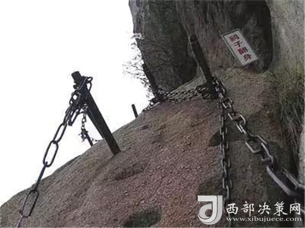 是從東峰到下棋亭必經(jīng)的一段絕壁險道,為華山著名的險道之一。其路鑿于上凸下凹的倒坎懸崖上,下視唯見寒索垂于凌空,不見路徑。游人至此,須面壁挽索,以腳尖探尋石窩,交替而下,其中幾步須如鷹鷂一般左右翻轉(zhuǎn)身體才可通過,故得此名。
