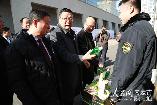 20日上午,由內(nèi)蒙古市場監(jiān)督管理局、呼和浩特市市場監(jiān)督管理局承辦的食品安全問題整治行動違法物品銷毀活動在呼和浩特市國際會展中心舉行。