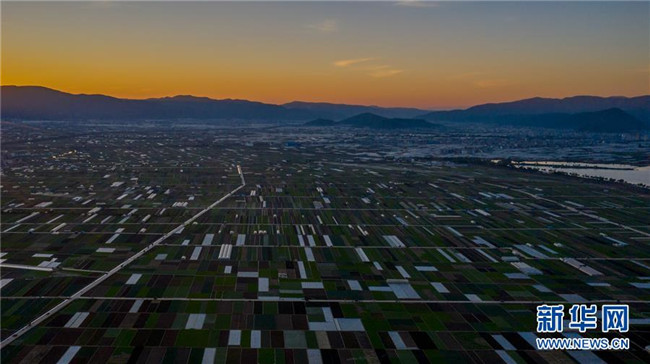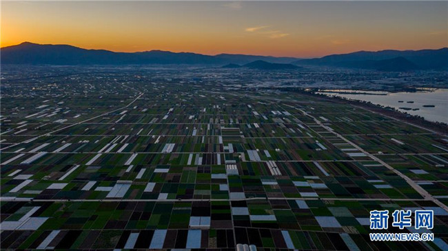 這是云南省玉溪市通??h的田園風(fēng)光(11月23日無(wú)人機(jī)拍攝)。初冬時(shí)節(jié),云南省玉溪市通??h風(fēng)景秀麗,山巒、湖水與農(nóng)田組成了一幅美麗的田園詩(shī)畫(huà)卷。新華社記者胡超攝