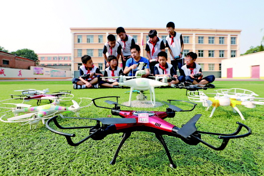 6月26日,河北省內(nèi)丘縣實驗小學(xué)學(xué)生在參加無人機(jī)特色課程。近年來,該校推進(jìn)素質(zhì)教育,讓學(xué)生走出教室,參與到內(nèi)容豐富、形式多樣的特色教育活動中。新華社記者 朱旭東 攝