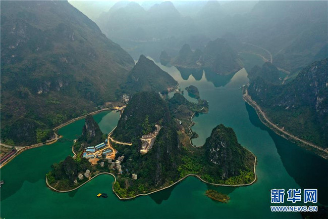 這是廣西凌云縣浩坤湖景區(qū)的山水風景(11月24日攝)。新華社記者張愛林