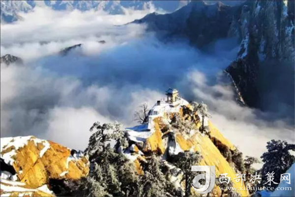西峰又名蓮花峰,因翠云宮前有石如蓮瓣《山海經(jīng)》載,上有池生千葉蓮花,故稱蓮花峰,芙蓉峰。海拔2082.6米,蓮峰夕照,是西峰最壯麗的景色,每當夕陽欲墜之際,満峰披霞鍍金,一派輝煌,真是“嶺背斜陽萬壑金”。西峰是華山最有觀賞價值的主峰之一,其峰勢險峻之驚人,傳說之動人,景觀之迷人,世所罕見。