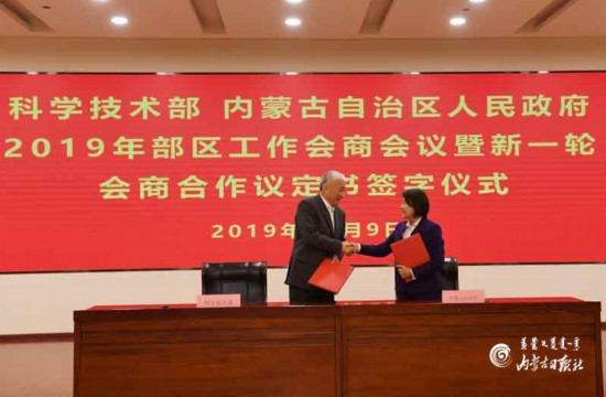 會(huì)上,王志剛、布小林代表雙方簽署工作會(huì)商制度議定書(2019—2024年)。雙方?jīng)Q定建立新一輪會(huì)商機(jī)制,成立部區(qū)合作委員會(huì),在構(gòu)建經(jīng)濟(jì)高質(zhì)量發(fā)展的產(chǎn)業(yè)創(chuàng)新體系、推動(dòng)呼包鄂創(chuàng)建國(guó)家自主創(chuàng)新示范區(qū)、提升以原始創(chuàng)新和產(chǎn)業(yè)技術(shù)創(chuàng)新為重點(diǎn)的科技支撐能力、探索生態(tài)文明建設(shè)新路子、建立“科技興蒙”新機(jī)制等方面加強(qiáng)會(huì)商,加快推動(dòng)創(chuàng)新型內(nèi)蒙古建設(shè)。