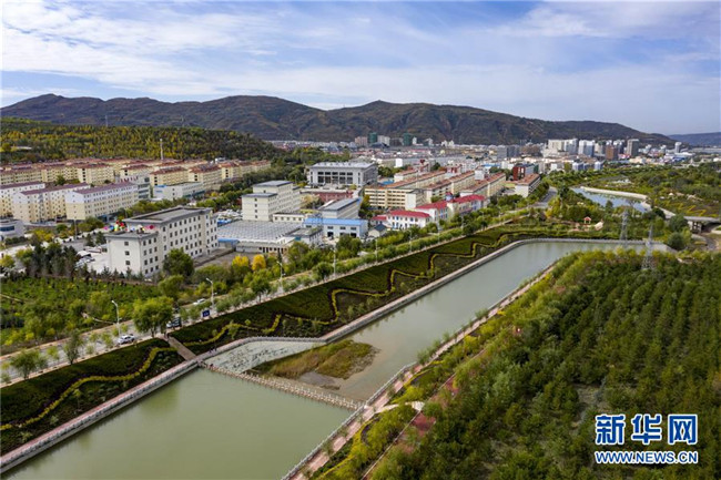 寧夏固原市隆德縣境內(nèi)的渝河兩岸健身步道、綠化景觀等設施完善,成為居民休閑娛樂的好去處(10月11日無人機拍攝)。 新華社記者 馮開華 攝