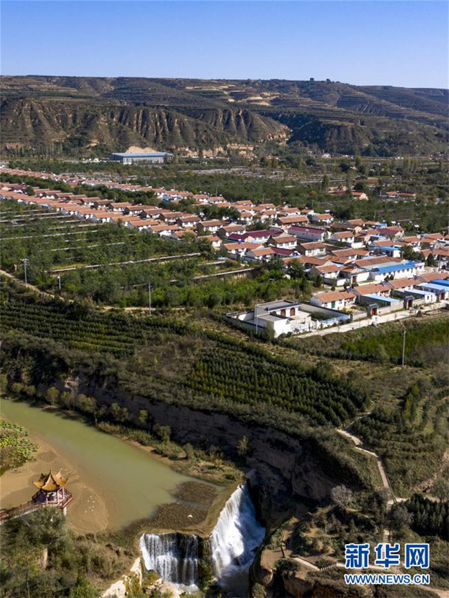 流經(jīng)寧夏固原市彭陽縣城陽鄉(xiāng)的茹河,因地殼變化和河床運動形成旱塬上的瀑布,當?shù)匾源税l(fā)展鄉(xiāng)村旅游(10月12日無人機拍攝)。 新華社記者 馮開華 攝