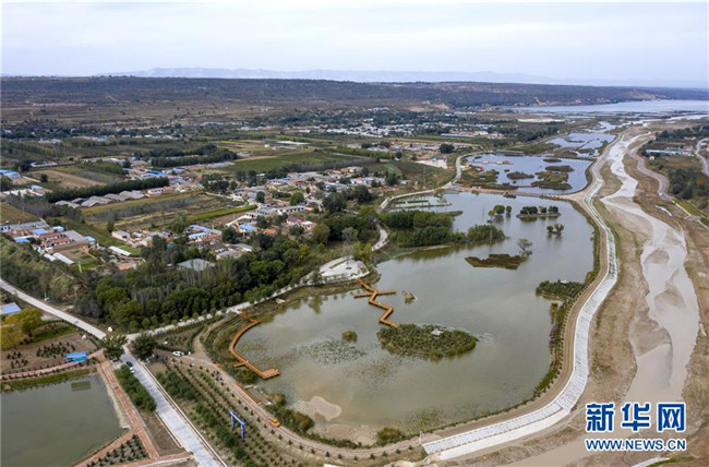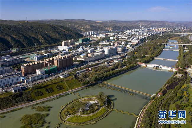 經(jīng)過綜合治理后的茹河成為寧夏固原市彭陽縣的一道新風景(10月12日無人機拍攝)。 新華社記者 馮開華 攝