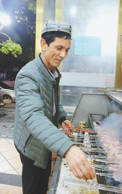 曾在阿布拉江烤肉王餐廳做過(guò)服務(wù)員的如則托合提夫婦,去年從和田老家來(lái)到南昌,經(jīng)過(guò)一年多學(xué)習(xí),今年5月選擇“單飛”,開(kāi)了一家屬于自己的燒烤店。“租門(mén)面、搞裝修,都是阿卜杜拉一手幫我弄的,還提供了兩萬(wàn)元啟動(dòng)資金。”談起眼下的生活,如則托合提非常滿意。