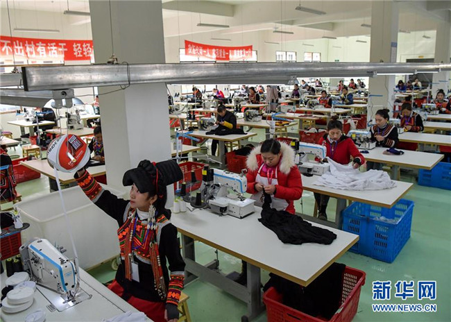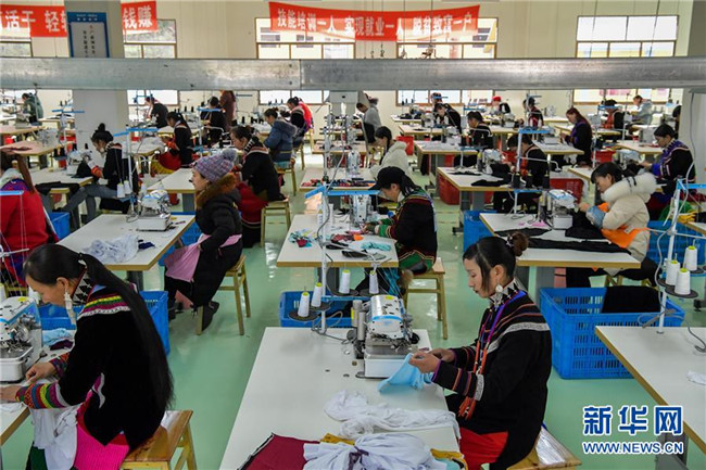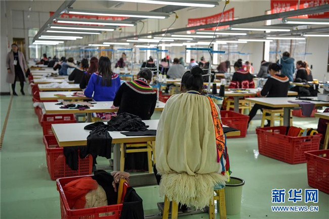 12月19日,工人在扶貧制衣車間工作。新華社記者 張超群 攝