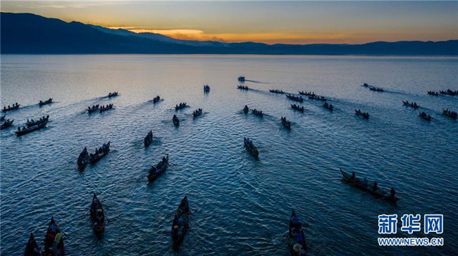 當日,位于云南省玉溪市江川區(qū)的星云湖迎來一年一度的開湖捕魚季,600余艘漁船駛入星云湖捕撈。 星云湖是云南省九大高原湖泊之一,本次開湖捕魚時間將從2019年12月25日持續(xù)至2020年1月23日。 新華社記者 胡超 攝