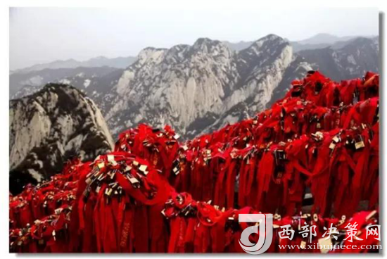 華山是一座愛(ài)情的殿堂。發(fā)生在華山上的每一個(gè)愛(ài)情故事都讓人感動(dòng)、讓人頂禮膜拜。眾所周知的神話(huà)傳說(shuō)《寶蓮燈》中,三圣母為了愛(ài)情,被二郎神用巨石壓在華山峰下;弄玉為了愛(ài)情,逃離安逸的生活,與蕭史雙雙來(lái)到華山,琴瑟合鳴;漢臣王咸不畏艱險(xiǎn),到華山尋找賢妻南陽(yáng)公主等等這些愛(ài)情故事,感天動(dòng)地,流傳不衰。也許是讓華山上這些動(dòng)人的愛(ài)情故事所感染,不知從什么時(shí)候開(kāi)始,游人將自己對(duì)美好愛(ài)情的向往,對(duì)理想愛(ài)情固若磐石的期望用一把把閃閃的金鎖,堅(jiān)定的鎖在了華山之上,在華山的見(jiàn)證下,在華山神的保佑下,舉案齊眉、白頭偕老。