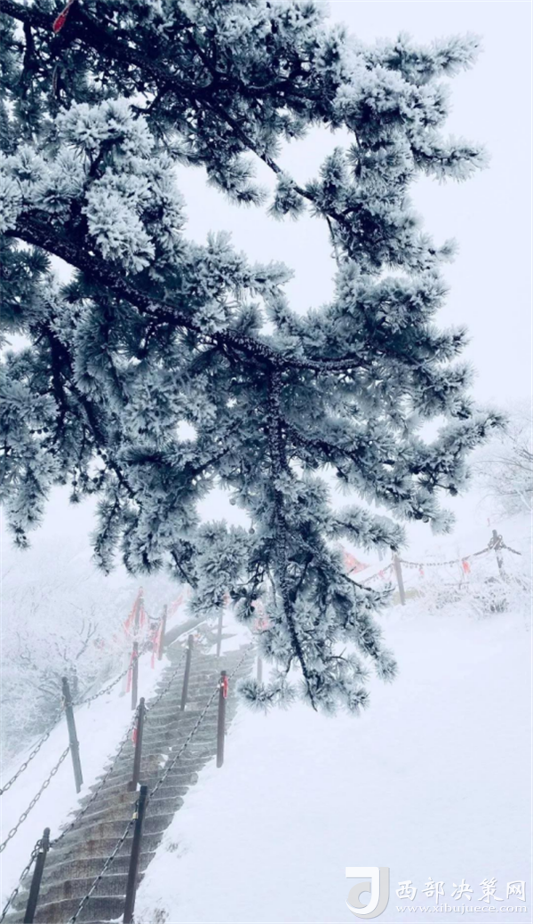 2020年第一場(chǎng)雪,紛紛揚(yáng)揚(yáng)灑落華山之巔。圣潔的雪花把華山妝扮得分外妖嬈嫵媚,平日陡峭的巖石,象穿著潔白的羽衣,宛若天仙般亭亭玉立于峰頭路旁,似向游人拂疑,微笑致意,最讓為之從心里震顏起敬的是,華山雪中松樹的雄姿與風(fēng)情。