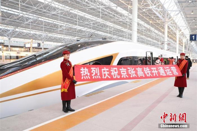 資料圖:2019年12月30日,北京至張家口高速鐵路(簡(jiǎn)稱(chēng)京張高鐵)開(kāi)通運(yùn)營(yíng)。中新社記者 蔣啟明 攝