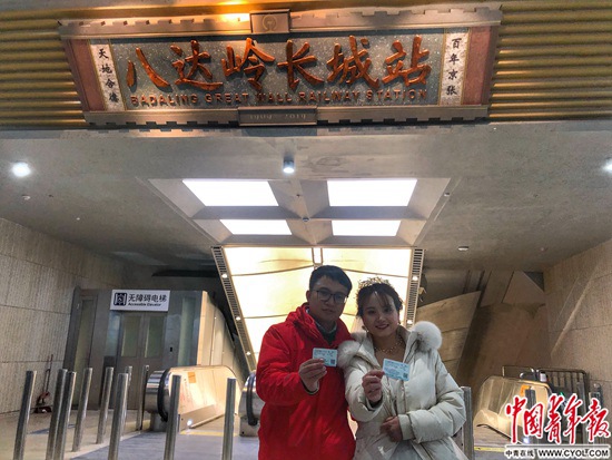 最后檢查完八達(dá)嶺長城站的防撞條、電梯等細(xì)節(jié)后,手機(jī)屏幕的時(shí)鐘跳到了深夜1點(diǎn),32歲的胡維急忙趕回不遠(yuǎn)處的員工宿舍。那里,妻子肖雅萍正在屋里試婚紗。
