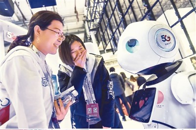 參觀者在北京舉行的2019世界5G大會(huì)上了解一款5G機(jī)器人。彭子洋攝(新華社發(fā))