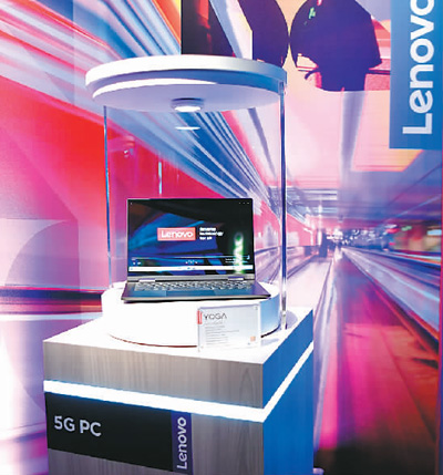 1月8日,聯(lián)想公司推出的全球首款5G電腦——“Yoga 5G”在2020年美國拉斯維加斯消費(fèi)電子展上公開展示,首次將5G連接功能從智能手機(jī)領(lǐng)域拓展到高端計(jì)算領(lǐng)域。新華社記者 吳曉凌攝