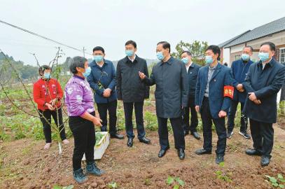 春回大地,正是春耕好時(shí)節(jié)。黎明村村民搶抓農(nóng)時(shí),有的在翻耕土地,有的正給田間作物澆水施肥,有的在播種早春玉米,一片忙碌景象。彭清華走進(jìn)村口的花椒基地,與套種茄子秧苗的村民親切交談,詢問栽種面積、土壤墑情、生長周期、市場(chǎng)銷路等情況。他說,一年之計(jì)在于春,切實(shí)抓好春耕生產(chǎn)對(duì)于實(shí)現(xiàn)全年豐產(chǎn)豐收意義重大。農(nóng)時(shí)不等人,要在嚴(yán)格落實(shí)防控措施的同時(shí),及時(shí)推進(jìn)春季農(nóng)業(yè)生產(chǎn)和生豬恢復(fù)生產(chǎn),因地制宜調(diào)整種養(yǎng)業(yè)結(jié)構(gòu),確保穩(wěn)產(chǎn)保供和農(nóng)民持續(xù)增收。有關(guān)部門要繼續(xù)做好服務(wù)保障,加強(qiáng)技術(shù)指導(dǎo),強(qiáng)化農(nóng)資儲(chǔ)備、調(diào)劑和配送,搞好產(chǎn)銷銜接,讓生產(chǎn)資料進(jìn)得來、農(nóng)產(chǎn)品賣得出。對(duì)隔離觀察群眾要做好生產(chǎn)扶持工作,幫助他們克服困難、不誤農(nóng)時(shí)。