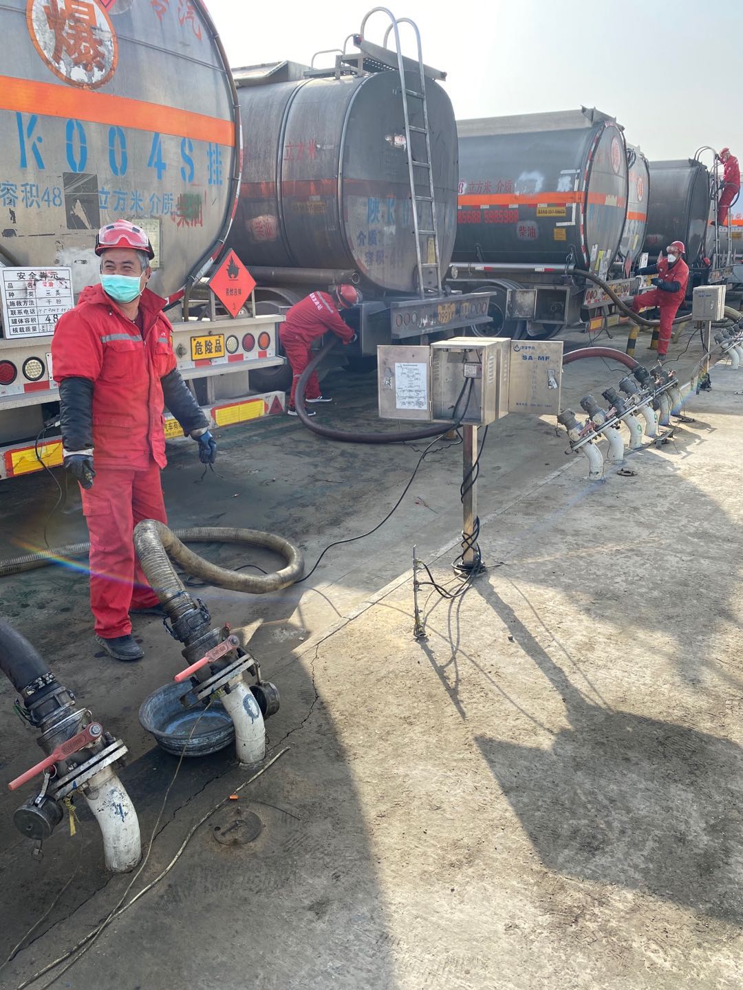 已近零時,空曠的付油區(qū)氣溫早已降至零攝氏度以下。此時,油庫的發(fā)油作業(yè)依然沒有停止……油庫的幾名工友,頭戴紅色安全帽、身著藍色工裝,對入庫油庫油車進行安全檢查,驗票員仔細核對著票據(jù)信息,引導(dǎo)車輛正確??浚粩嗵崾抉{駛員注意操作安全。