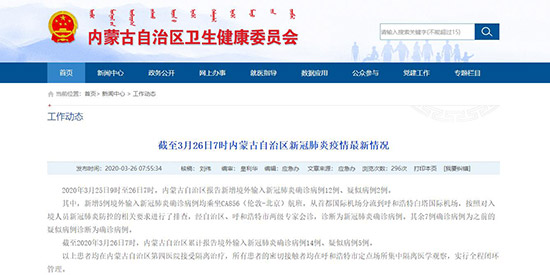 截至2020年3月26日7時(shí),內(nèi)蒙古自治區(qū)累計(jì)報(bào)告境外輸入新冠肺炎確診病例14例、疑似病例5例。