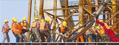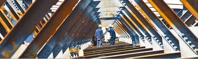 4月3日,濟南鳳凰路黃河大橋正在緊張施工。新華社記者 王 凱攝