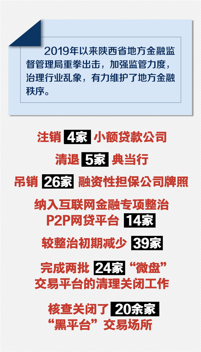 陜西省地方金融監(jiān)督管理局緊密圍繞“一年打擊遏制、兩年深挖根治、三年長(zhǎng)效長(zhǎng)治”的要求,牽頭12家單位共同成立了全省地方金融領(lǐng)域掃黑除惡專項(xiàng)斗爭(zhēng)工作領(lǐng)導(dǎo)小組,全面負(fù)責(zé)推進(jìn)省地方金融領(lǐng)域掃黑除惡專項(xiàng)斗爭(zhēng)工作。