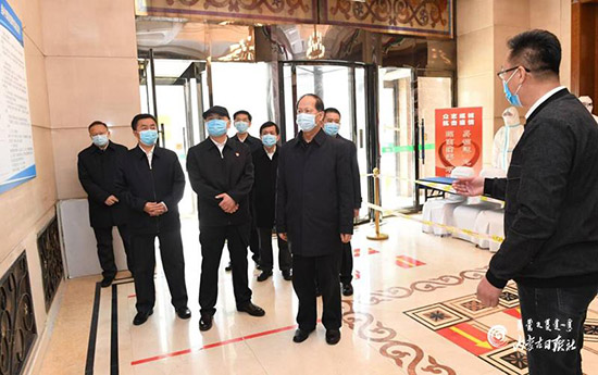 4月13日,自治區(qū)黨委書(shū)記、人大常委會(huì)主任石泰峰來(lái)到呼倫貝爾市滿(mǎn)洲里,調(diào)研入境人員隔離點(diǎn)防控工作情況。 內(nèi)蒙古日?qǐng)?bào)社融媒體記者 袁永紅 攝
