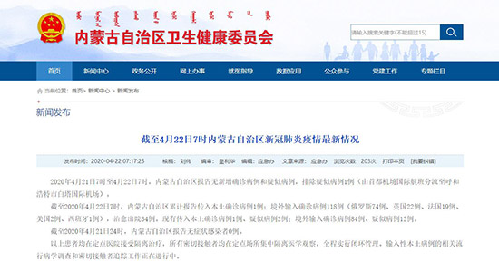 截至2020年4月21日24時(shí),內(nèi)蒙古自治區(qū)報(bào)告無(wú)癥狀感染者0例。
