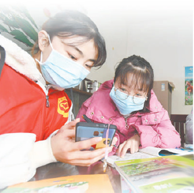 江西省樟樹(shù)市洲上鄉(xiāng)青年志愿者輔導(dǎo)農(nóng)村學(xué)生學(xué)習(xí)。周 亮攝