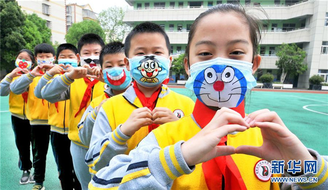 5月8日,安徽省安慶市迎江區(qū)華中路第二小學(xué)在操場上開展手繪“微笑口罩”創(chuàng)意活動(dòng),通過讓孩子們手繪各式笑臉并貼到口罩上的方式,引導(dǎo)學(xué)生培養(yǎng)健康樂觀的心態(tài)。 當(dāng)日是世界微笑日。 新華社發(fā)(黃有安 攝)