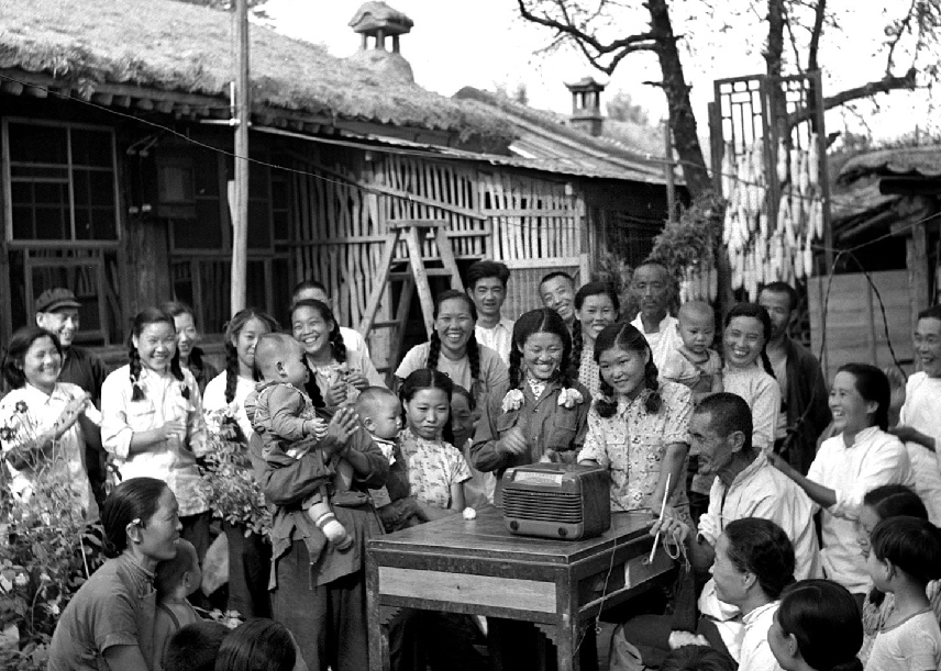 1954年9月15日至28日,第一屆全國(guó)人民代表大會(huì)第一次會(huì)議在北京召開(kāi)。圖為北京郊區(qū)農(nóng)民收聽(tīng)會(huì)議實(shí)況轉(zhuǎn)播的情形。