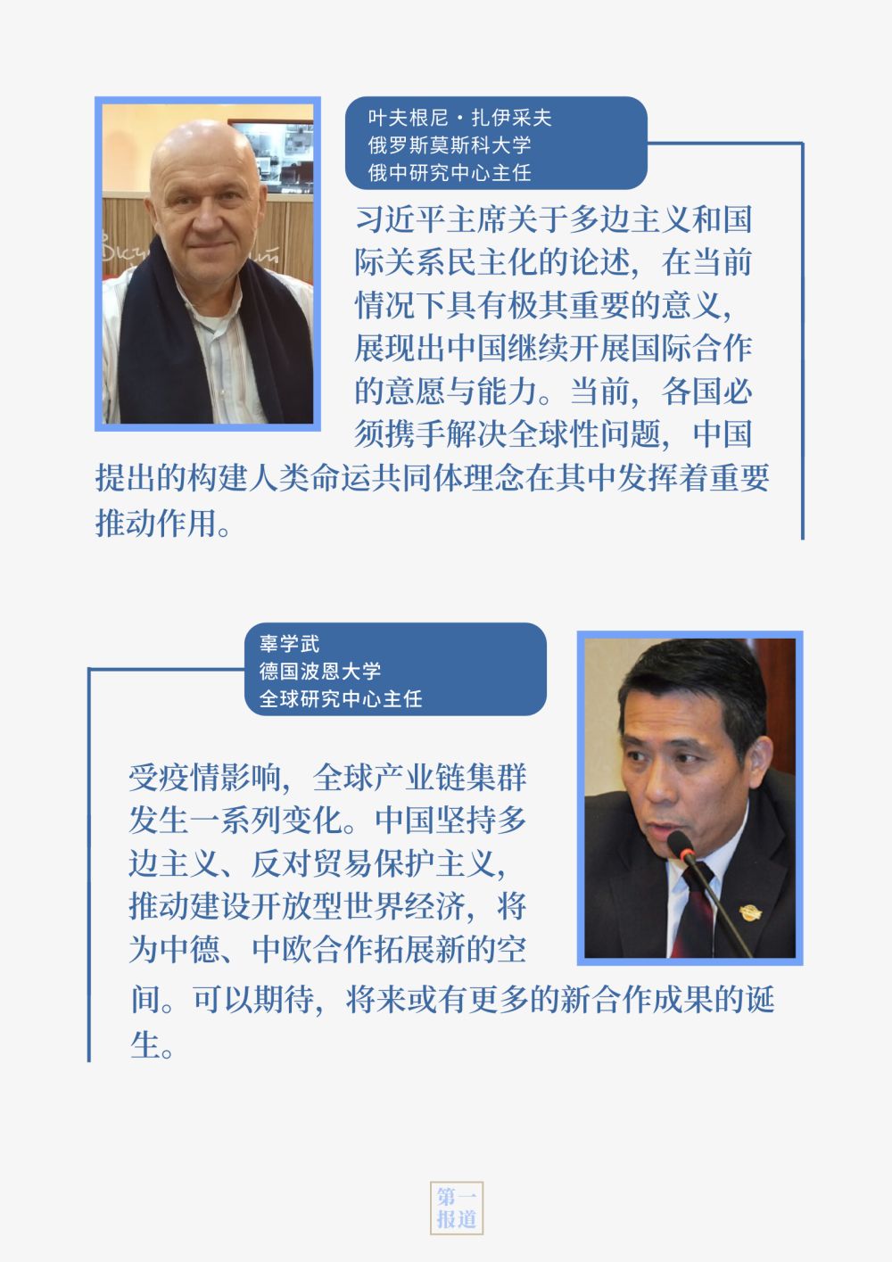 習(xí)近平強(qiáng)調(diào),中國(guó)將堅(jiān)持多邊主義和國(guó)際關(guān)系民主化,以開放、合作、共贏胸懷謀劃發(fā)展,堅(jiān)定不移推動(dòng)經(jīng)濟(jì)全球化朝著開放、包容、普惠、平衡、共贏的方向發(fā)展,推動(dòng)建設(shè)開放型世界經(jīng)濟(jì)。