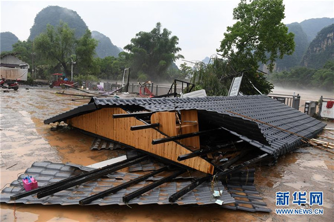 這是廣西陽朔縣遇龍河邊被洪水損毀的旅游設施(6月8日攝)。新華社記者 陸波岸 攝