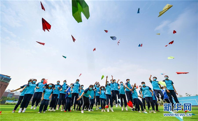 6月22日,河北省邯鄲市邯山區(qū)第一中學(xué)的高三學(xué)生將寫(xiě)有自己夢(mèng)想的紙飛機(jī)拋向空中。新華社記者 王曉 攝