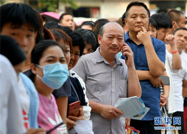 7月8日,在河南省寶豐縣第一高級(jí)中學(xué)考點(diǎn),家長在考場(chǎng)外等候考生。 當(dāng)日,全國部分地區(qū)2020年高考結(jié)束。 新華社記者 李嘉南 攝