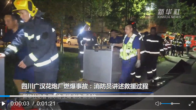 7月8日21時(shí)10分左右,廣漢金雁花炮有限責(zé)任公司南豐生產(chǎn)區(qū)廠房起火,22時(shí)25分引發(fā)燃爆,7月9日凌晨4時(shí)20分,事故現(xiàn)場明火全部撲滅。9日下午安排專業(yè)人員和工程車輛進(jìn)行清障,對庫存的引火線進(jìn)行轉(zhuǎn)運(yùn),徹底消除隱患。